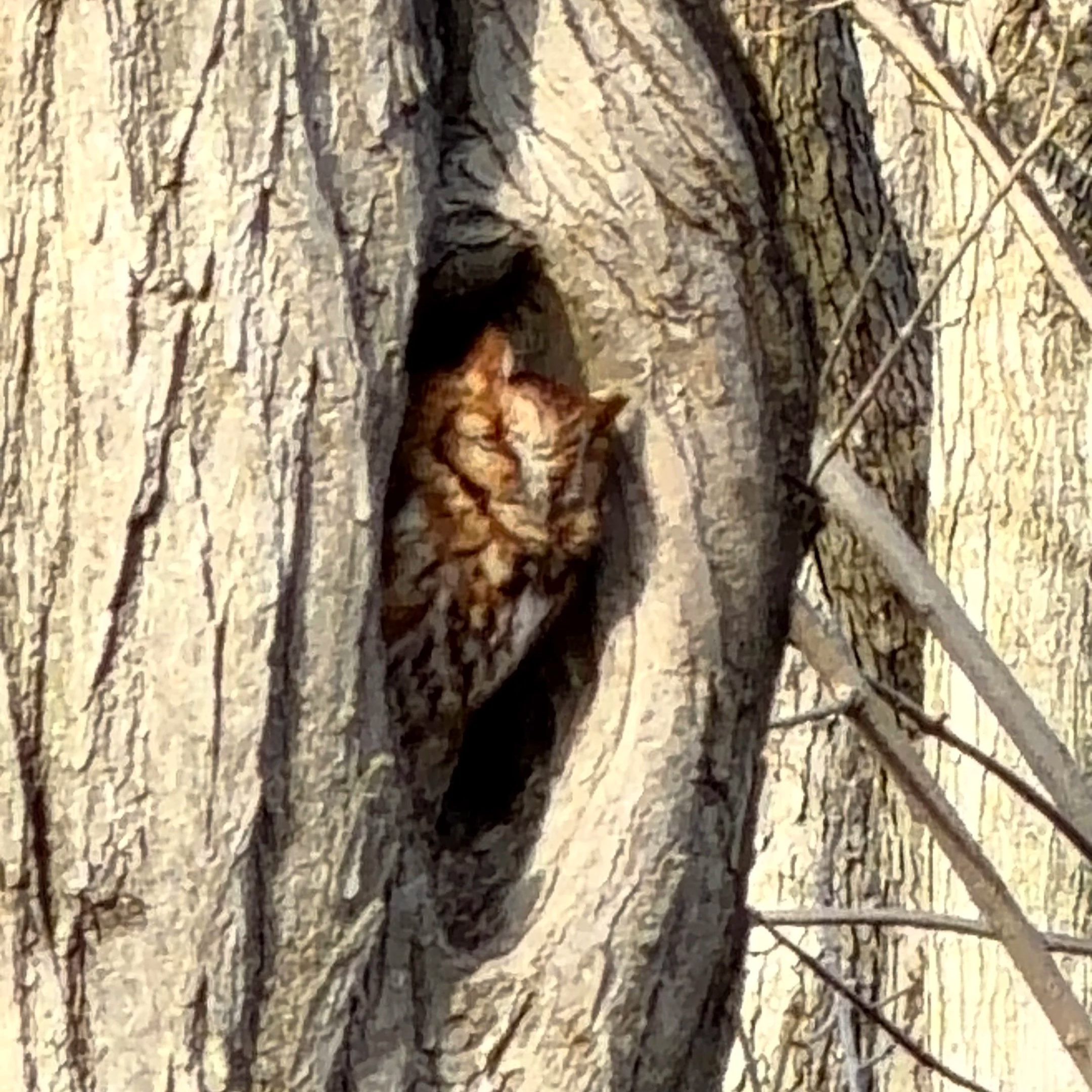 Ruby is a red morph eastern screech-owl who has been residing and roosting in a tree hole at Celery Bog since at least 2021. She’s a celebrity to bird watchers and photographers and I was so excited to actually see her during this brief visit.
